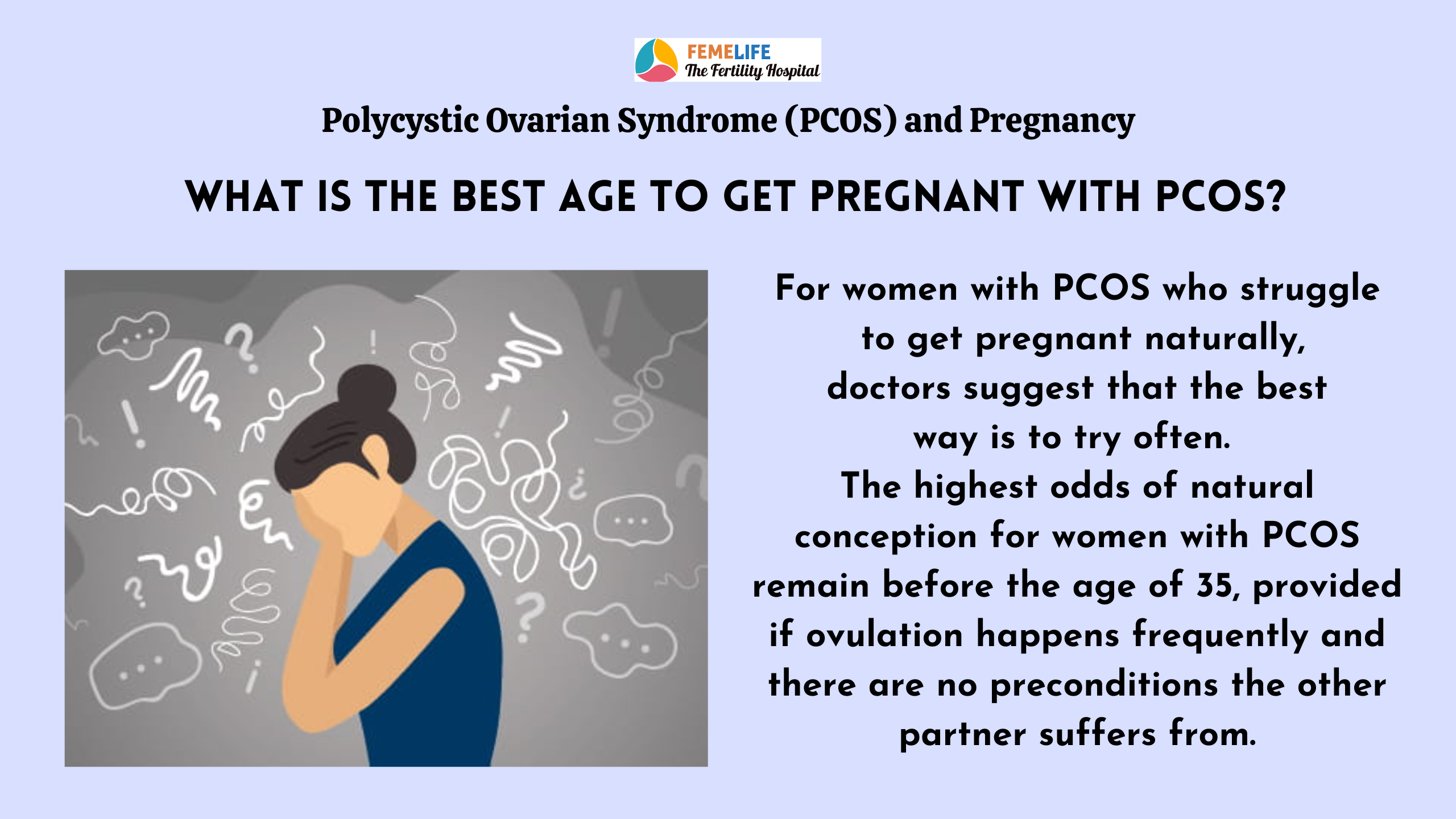 The best time for women with PCOS to get pregnant is before they turn 30. It’s possible to conceive up to the age of 37, but fertility declines after the age of 32 with steeper decline occurring after age 37.